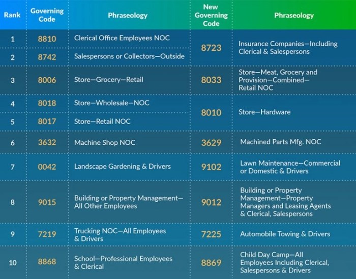 - Consult with insurance carriers or agents to understand the specific requirements for each Class Code.